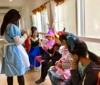 みんな思い思いの仮装をしてきてくれて、とっても可愛かったです!前日からの大雨で外に出るのは厳しいかなと思っていたのに、なんと青空が顔をだし(きっと皆の日頃の行いがいいからです)出かける事ができました!歩道を歩いていると、車内から手を振ってくれた方や写真を撮る方も(・。・;) そして、お菓子を下さったお店の方や近所の皆様、本当にありがとうございました!教室では、色々なゲームをして楽しみました。写真は、不思議の国のアリスとじゃんけんをしているところ。子供達の写真を沢山アップしたいのですが、このブログは一枚ずつしか載せれないようで・・・。参加してくれたお友達、本当にありがとう!