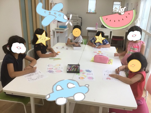 熱中しすぎると、こちらの話しも聞こえなくなる子供達。「ところで〇〇ちゃん、ブドウは英語でなんて言うんだっけ?」と尋ねると「ちょっと私今、色塗ってて忙しいから話かけないで!」ひええーっ(@_@;) そんな迫力満点な子供達に負けないよう、こちらも気合入れて参ります!